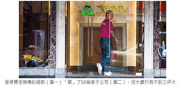 這棟寶佳機構的總部(圖一)「藏」了50幾家子公司(圖二),但大廳只有不到三坪大。