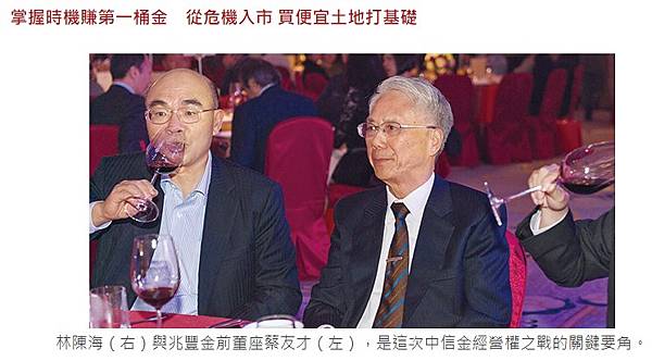 林陳海(右)與兆豐金前董座蔡友才(左),是這次中信金經營權之戰的關鍵要角。