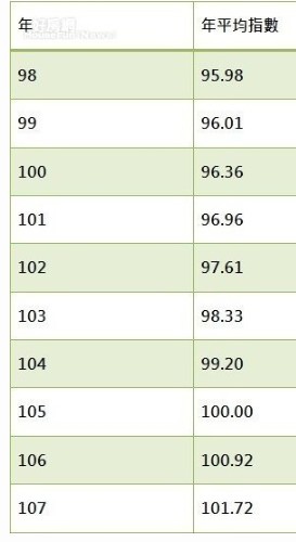 消費者物價指數:房租類 基期:105年=100(註:民國108年1月,房租指數來到102.27 /資料來源:主計處)