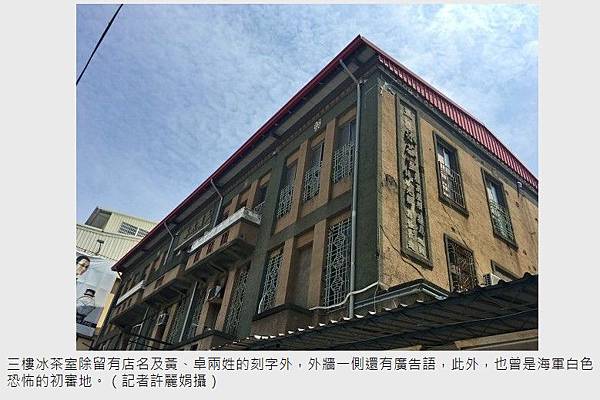海軍中校退役、現為高雄市文化愛河協會理事長的袁英麟說,在海軍白色恐怖時期,都先帶至左營大路上的「三樓冰茶室」初審,這棟洗石子外牆的私人建築現仍可見幾個店名和廣告語等大字,當年大多晚上10、11點帶思想犯到此刑求偵訊,有問題的送至海軍招待所收押取供,接著再送到彰化員林的反共先峰營,直到「洗心革面」。