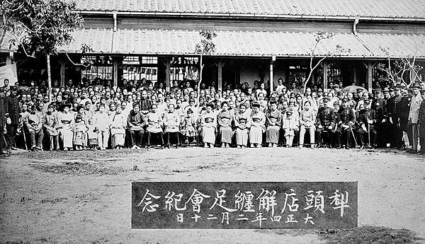 大約1905年時的北港公學校女子部學生。學生們大多唐裝纏足。