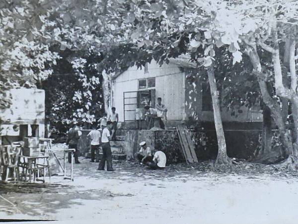 60年前的太平島究竟是怎麼樣的生態面貌呢?頗是令人好奇,黑白相片記錄了島上佈滿低矮的叢林,還有小廟及廢棄的日軍工廠。圖為太平島上的日常起居、生活樣貌。(林鈺祥授權提供)