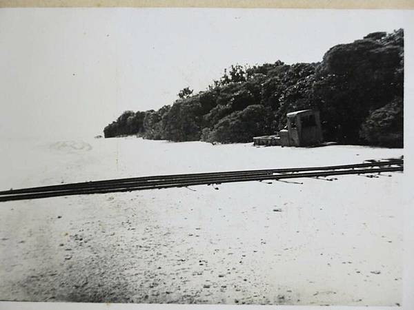島上的沙非常白,是貝殼風化而成,沿著沙灘徒步環島一周約2.8公里,海灘上還有日軍遺留下來的補給軌道與牽引車頭。(林鈺祥授權提供)