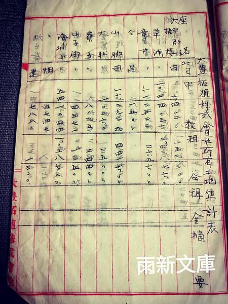 日治時期辜家文獻-辜家大豐拓殖株式會社土地集計表,內容相當豐富,可以考證辜家當時財力有多雄厚,亦可考據中部的古地名,往事如昔躍然紙上!整份約有2-30頁,僅分享部份內容!