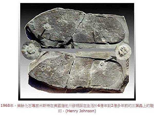 在美國德克薩斯州瑞拉克西(Raluxy)河岸的岩層中,在恐龍腳印化石旁邊發現了12對人的腳印化石。十幾年前,卡爾·鮑就對此開始了深入的研究,他以充分的論據排除了人為雕刻的可能。