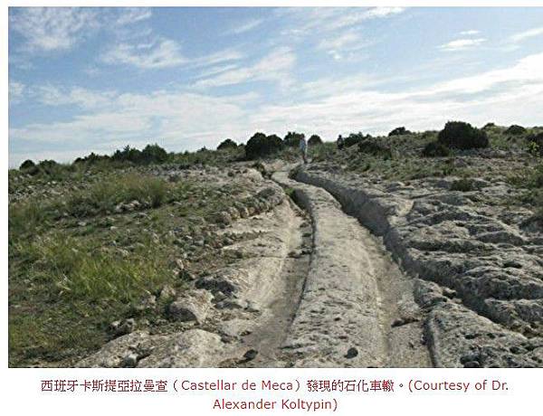 西班牙卡斯提亞拉曼查(Castellar de Meca)發現的石化車轍。(Courtesy of Dr. Alexander Koltypin)