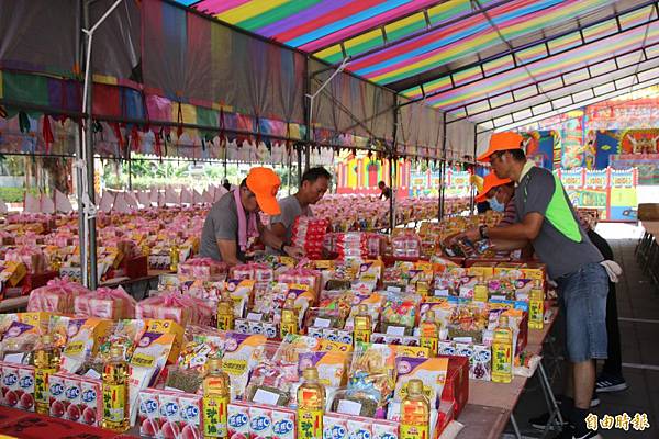 受疫情衝擊,許多社福團體皆面臨物資短缺困境,永貞宮主委張淑芬表示,現代社會許多上班族因忙於工作,無暇準備祭拜供品,因此由信助捐款、廟方準備素食果品、乾糧、飲料等,共有372份,另還備有3600斤白米,待今晚祭拜後,所有供品將平均分送給縣內10餘家社福團體,給予最實質的幫助。