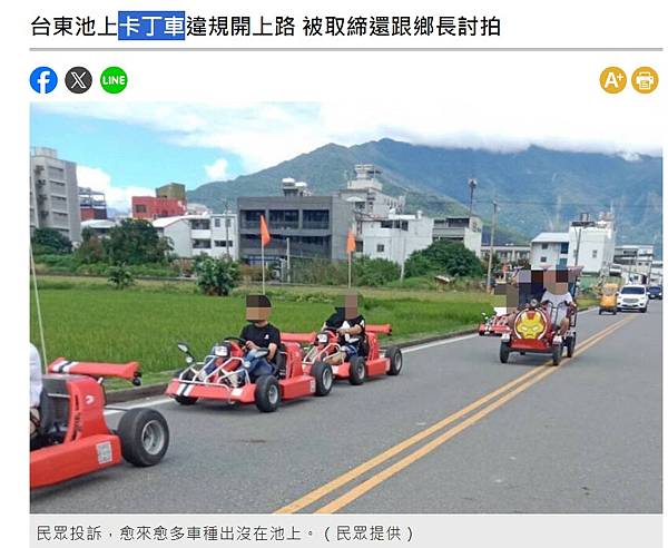 台東池上卡丁車違規開上路 被取締還跟鄉長討拍 - 生活 - 自由時報電子報