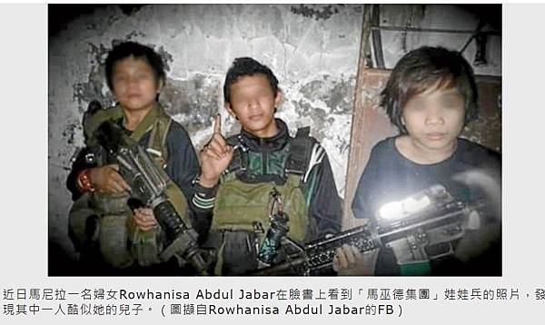 近日馬尼拉一名婦女Rowhanisa Abdul Jabar在臉書上看到「馬巫德集團」娃娃兵的照片,發現其中一人酷似她的兒子。(圖擷自Rowhanisa Abdul Jabar的FB)