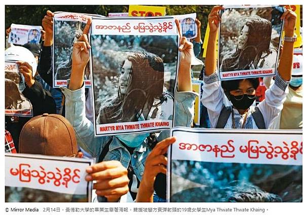 2021年緬甸軍方發動政變,全國民眾走上街頭示威抗議,軍方以血腥鎮壓回應(AP