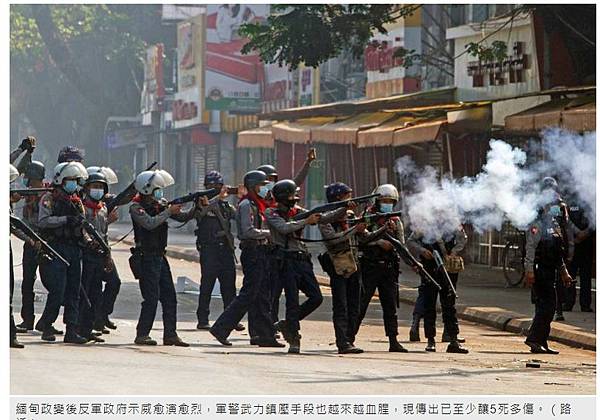 〔即時新聞/綜合報導〕緬甸政變後反軍政府示威愈演愈烈,軍警武力鎮壓手段也越來越血腥,現傳出已至少釀5死多傷。