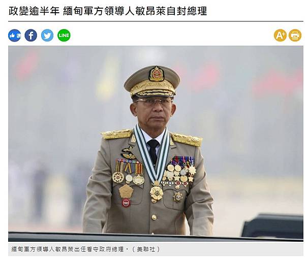 政變逾半年 緬甸軍方領導人敏昂萊自封總理 - 國際 - 自由時報電子報 https://bit.ly/3jmGaxQ