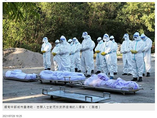 緬甸確診數自6月起激增,昨天公布4964單日確診,並有338人死亡,醫療機構及喪葬團體認為實際數字更高。此外,緬甸東部發生嚴重洪水,讓掌控疫情更為困難。