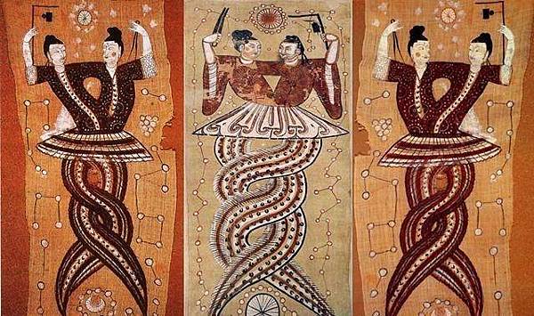 1963年,中國新疆吐魯番地區阿斯塔那古墓群出土一幅震撼考古界的絹畫──畫中伏羲與女媧人首蛇身、尾部交纏,被稱為「伏羲女媧交尾圖」。讓人驚奇的是,畫中兩人蛇尾交纏的形象與現代生物學中DNA的雙螺旋結構極為相似,引發中外學者的深度關注。