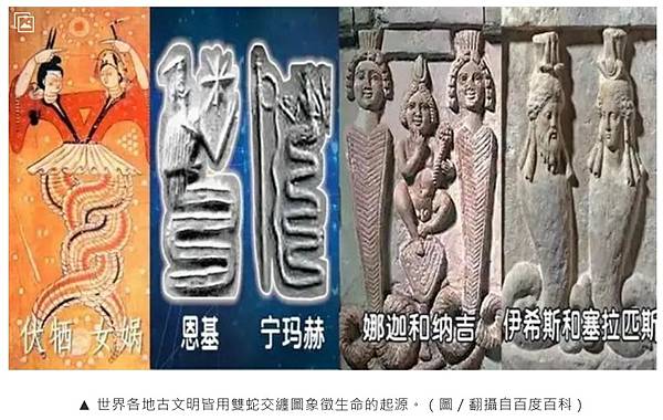 世界各地古文明皆用雙蛇交纏圖象徵生命的起源。(圖/翻攝自百度百科)