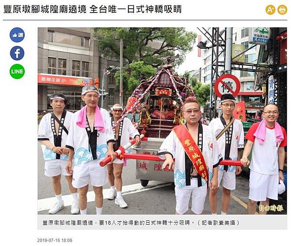 分享豐原墩腳城隍廟遶境 全台唯一日式神轎吸睛到Facebook 分享豐原墩腳城隍廟遶境 全台唯一日式神轎吸睛