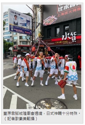 豐原墩腳城隍廟會遶境,日式神轎十分特殊。(記者歐素美翻攝)
