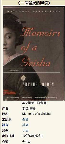 雖然此書在美國暢銷,但日本人對其大加抨擊,認為其歪曲日本藝妓文化,有人甚至批評其為美國人對日本文化的強姦。這名藝妓自己還出版《真正的藝伎回憶錄》(芸妓峰子の花いくさ―ほんまの恋はいっぺんどす)來反擊。