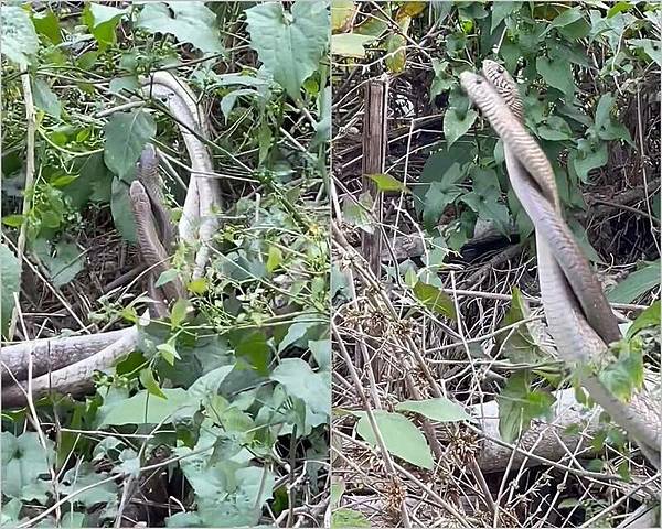 集集特生中心林德恩則說,夏天即將到來,天氣漸熱蛇類就會頻繁活動,這2條南蛇公蛇彼此交纏,其實是在打架爭地盤,若是交配,公、母蛇不會交疊成「麻花捲」,而是只有下半身會疊在一起,上半身則是分開,且會躲在隱密的草叢,避免有外力干擾。