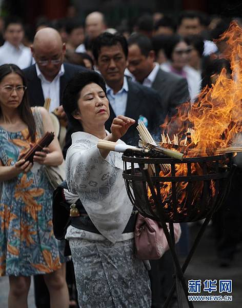 正說著,姨媽的幾個日本學生過來接我們。經過一個神社時,那裡正在舉行供奉筷子的儀式,我們快步走了上去。只見不少趕過來的當地民眾紛紛把自己家裡使用過的筷子扔在一個大鐵鍋裡。大約一刻鐘後,一個商人開始點火焚燒。姨媽告訴我,這裡每年都要舉行筷子節,儀式的最後,就是把以前使用過的筷子焚燒,作為供奉。