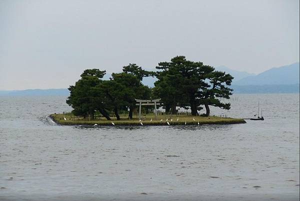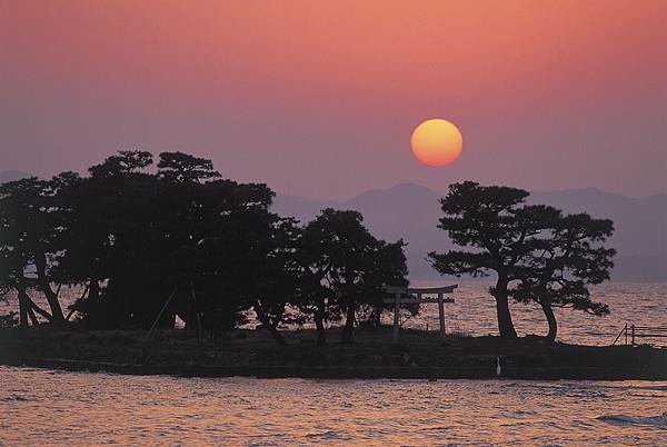Yomegashima is the sole island in Lake Shinji, located 200 metres from the lakeshore. Being a sanctuary dedicated to the goddess Benten, a sacred Torii gate sits at one extremity of the island. As if floating upon the surface of Lake Shinji, this is an aesthetically pleasing sight with its perfectly oval shape and pine trees speckled over it. Literally meaning the “Bride Island”, a legend tells of a homesick young bride who drowned in the lake when trying to cross it when it was frozen over, and the gods who took pity on her and raised an island where she fell.