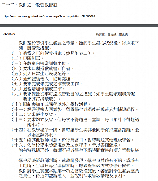 學校訂定教師輔導與管教學生辦法注意事項,第22條。(圖/教育部提供)