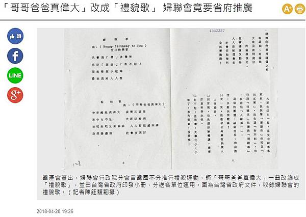 分享「哥哥爸爸真偉大」改成「禮貌歌」 婦聯會竟要省府推廣到Facebook 分享「哥哥爸爸真偉大」改成「禮貌歌」 婦聯會竟要省府推廣到Line 分享「哥哥爸爸真偉大」改成「禮貌歌」 婦聯會竟要省府推廣到Google+