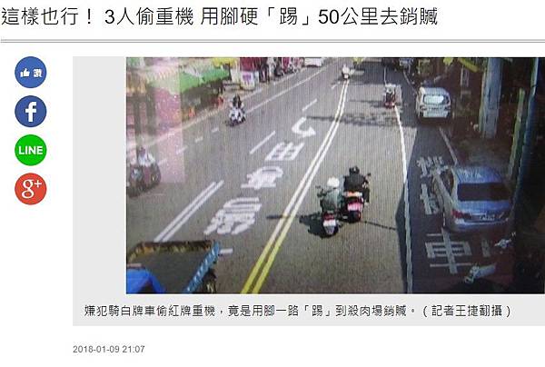 這樣也行! 3人偷重機 用腳硬「踢」50公里去銷贓 - 社會 - 自由時報電子報
