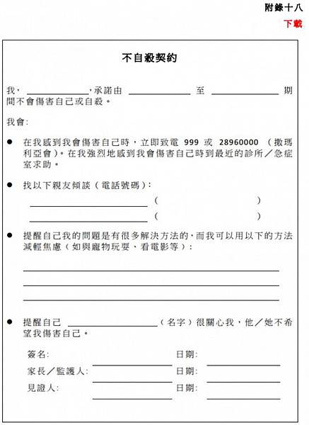 網傳教育局文件「不自殺契約」 心理學家:為輔導工具 望受助者記起承諾 增求助機會(明報)