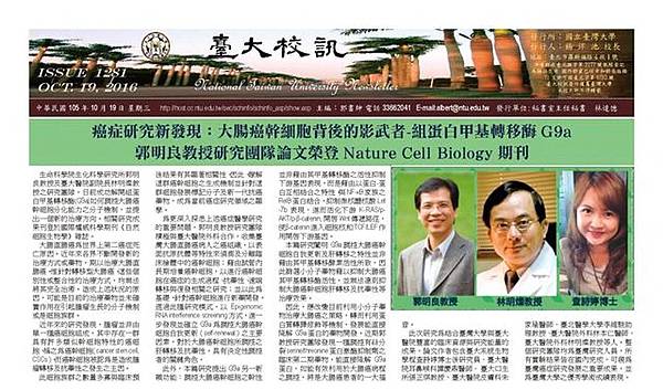 台灣大學前教授郭明良的研究團隊涉嫌造假論文,該文遭揭發前還登上當年《臺大校訊》頭版頭條。取自台大網頁