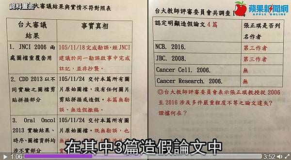 至於她用來申請升等教授的兩篇2013年論文遭台大認定有剪接拼貼,她則說這兩篇論文都沒有勘誤、未遭撤稿,並無不實;另一篇2006年論文被指有兩處圖檔重複套用,她去年11月已完成勘誤。