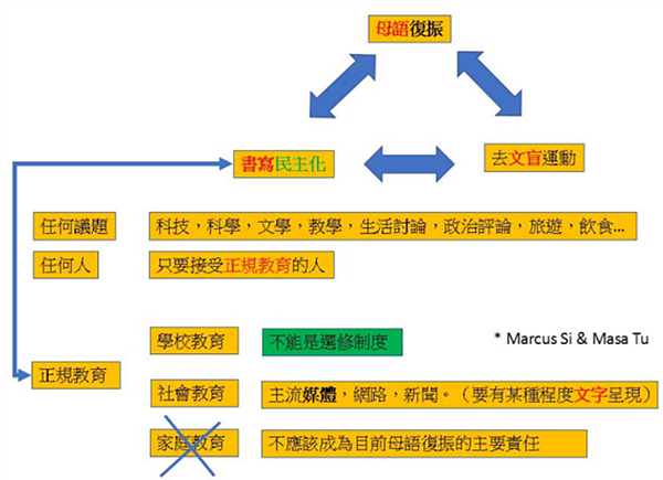 語言復振的目標,是語言的正常化。簡單來說就是「什麼場合都能用、什麼話題都能談」。因此,必須讓本土語言從教育、文化,拓展到其他領域與日常生活,讓更多人「有感」。