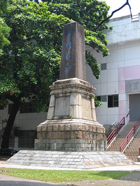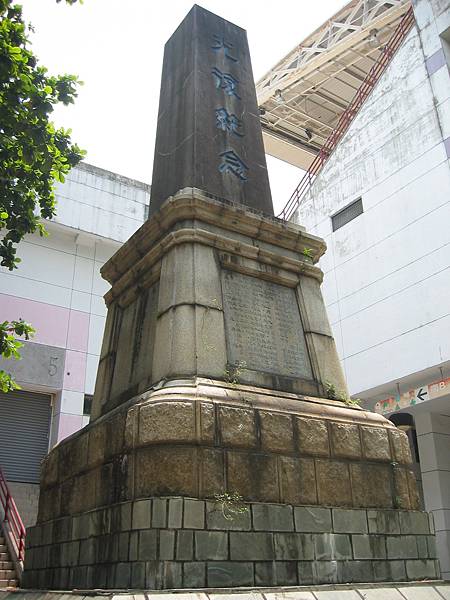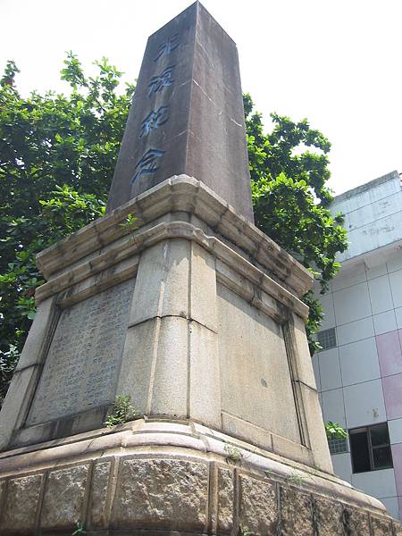 五、「1896(明治29)年4月,營地上的木標改造為花崗石打造的北白川宮征討紀念碑;其上的圓錐物,係以得自清軍的戰利品砲身,改鑄而成。昭和年間,台灣總督府指定為史蹟。光復後遭民眾搗毀,到民國64年,始改建為今天的抗日紀念碑。」