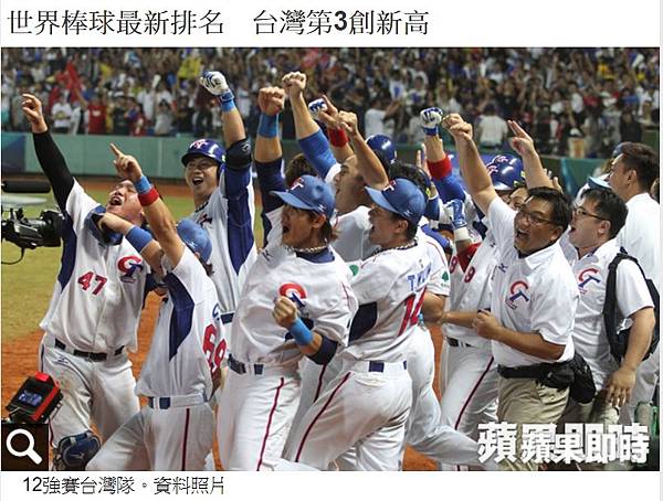 而韓國隊年十一月獲得十二強大賽冠軍之後,一口氣躍升4名,排名第4,追平追平2009年紀錄,積分為4641分。第5名之後依序分為古巴、委內瑞拉、墨西哥、加拿大、義大利與荷蘭。(體育中心/綜合報導)