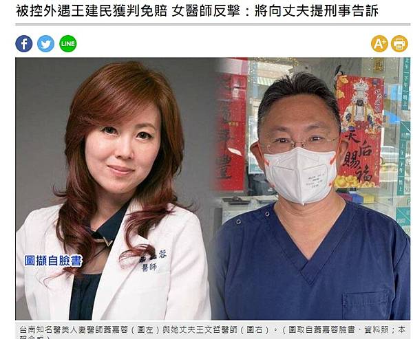 被控外遇王建民獲判免賠 女醫師反擊:將向丈夫提刑事告訴 - 社會 - 自由時報電子報 https://bit.ly/41iSgNt