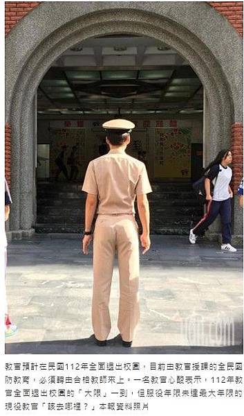 教官預計在民國112年全面退出校園,目前由教官授課的全民國防教育,必須轉由合格教...