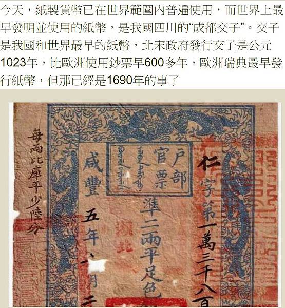 銅錢/交子/紙鈔/會子是中國南宋時的紙幣,紹興三十年(1160年)於臨安首度發行/世界上最早出現的紙幣,是中國北宋時期四川成都的“交子”。 @ 姜朝鳳宗族 :: 痞客邦 PIXNET :: - http://goo.gl/5rXafS