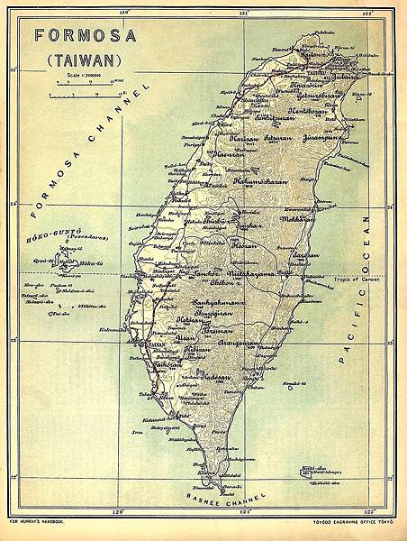 有趣的是,因為是有種類似鳥瞰圖的畫法,因為「俯瞰角度與方向?」的關係,其中當時的台灣被「倒著」畫了出來,且形狀被壓縮成,你我可能不太認識的台灣:)