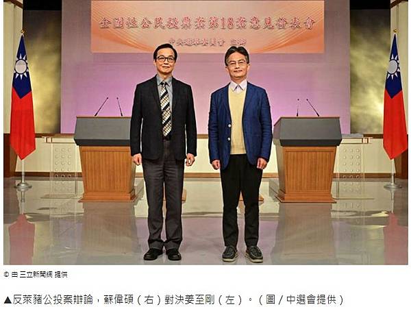 ▲反萊豬公投案辯論,蘇偉碩(右)對決姜至剛(左)。(圖/中選會提供)