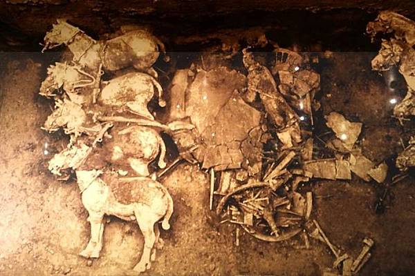 在青銅馬車被重新發掘的1980年,呈現在考古專家眼前的是厚重泥土中的3000多塊碎片。這是因歲月變遷,上層的填土塌壓造成的。