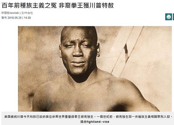 百年前種族主義之冤 非裔拳王獲川普特赦