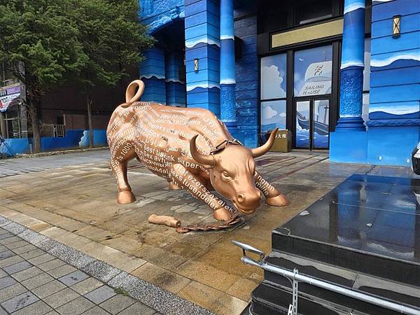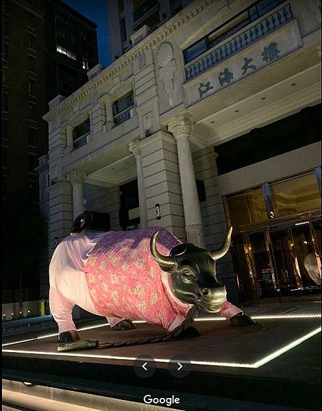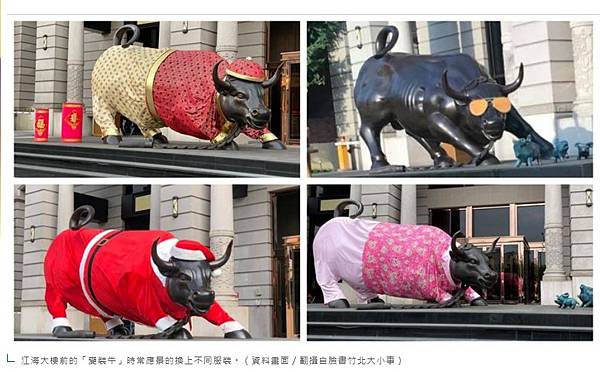 竹北江海大樓外的「變裝牛」每到特定節日,都會被換上一身華服,從農曆新年、母親節、國慶日,甚至是聖誕節都有特殊裝扮,已經成為在地人的打卡聖地,時常關心「牛牛」的動靜。