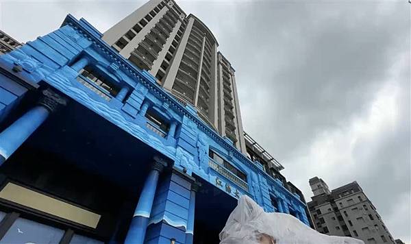 不過「牛牛」已經消失1年多,原本大樓落地窗的愛馬仕橘隔熱貼也被卸下,大樓外圍起了圍籬正在進行工程。有網友目擊,「江海大樓」的外牆這1個月來也在彩繪,近日成品露臉,牆面畫成藍色海洋和白色波浪,在一片豪宅大樓中格外突兀。