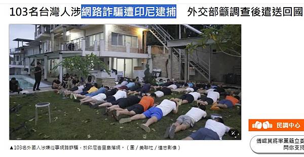 暑假旅遊旺季及畢業季將至,大量台灣人出國從事詐騙工作。印尼政府今(28)日宣布,印尼警方在峇里島一間別墅逮捕103名台灣人涉嫌從事網路詐騙,包括91名男性、12名女性。對此,我國駐印尼代表處表示,掌握相關調查進度,並請印尼方於調查完竣後,儘快將我國籍犯嫌遣送回台。