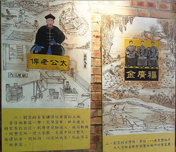 在模型上方的海報是介紹劉家先祖—劉傳老來到紙寮窩開創造紙事業的故事。也因為如此,劉家在此地開枝散業,讓紙寮窩成為劉家單姓村。
