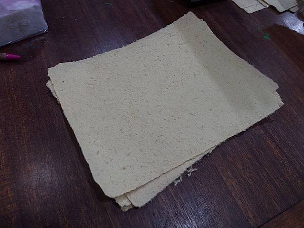 接下來人工散料、抄紙、壓紙,去除紙中的水份。