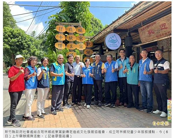 新竹縣政府社會處結合芎林鄉紙寮窩劉傳老造紙文化發展協進會,成立芎林鄉兒童少年服務據點,今(6日)上午舉辦揭牌活動。(記者廖雪茹攝)