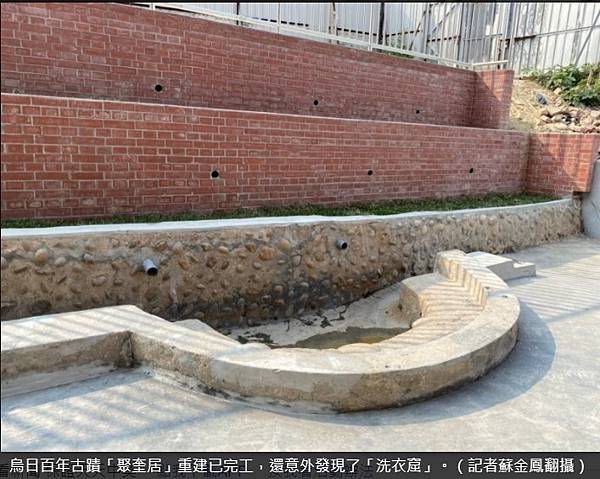 烏日百年古蹟「聚奎居」重建已完工,還意外發現了「洗衣窟」。(記者蘇金鳳翻攝)