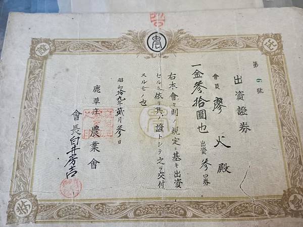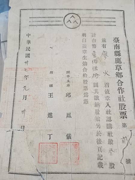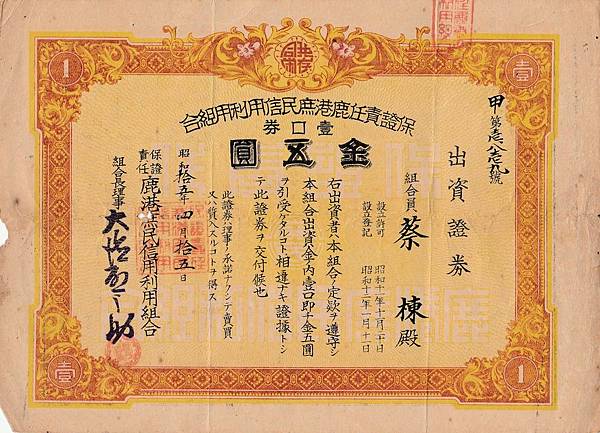 鹿港信用合作社1940年的"股票"!