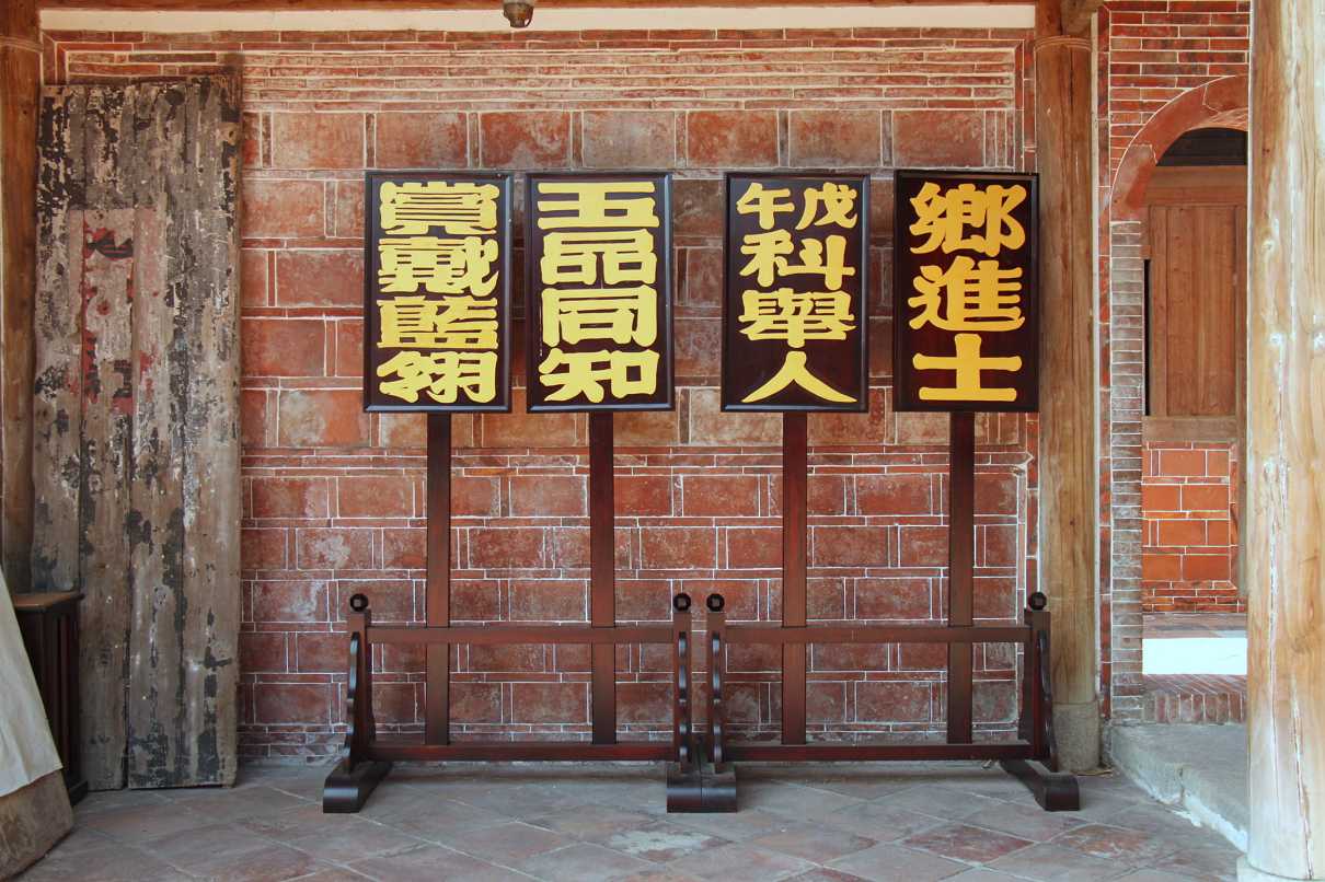 旗桿+旗竿/台南麻豆大埕里的郭家,其開基祖郭由袍早在鄭成功來台前十一年的明永曆五年,便由福建漳州龍溪縣來到麻豆/「郭舉人宅」的大埕郭家古厝/旗竿座即武舉人曾考取功名的「文魁」和「武魁」匾額及「舉人杆 」/山牆外側「鐵剪刀」鐵件-指山牆上S形的鐵構件。據說是傳自荷蘭的建築手法,具有固定橫樑的功能,同時也有裝飾、辟邪的作用。 @ 姜朝鳳宗族 :: 痞客邦 PIXNET :: - http://goo.gl/3pXNqk